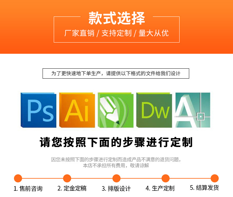 可按客户需要定制产品材质/尺寸/印刷内容等